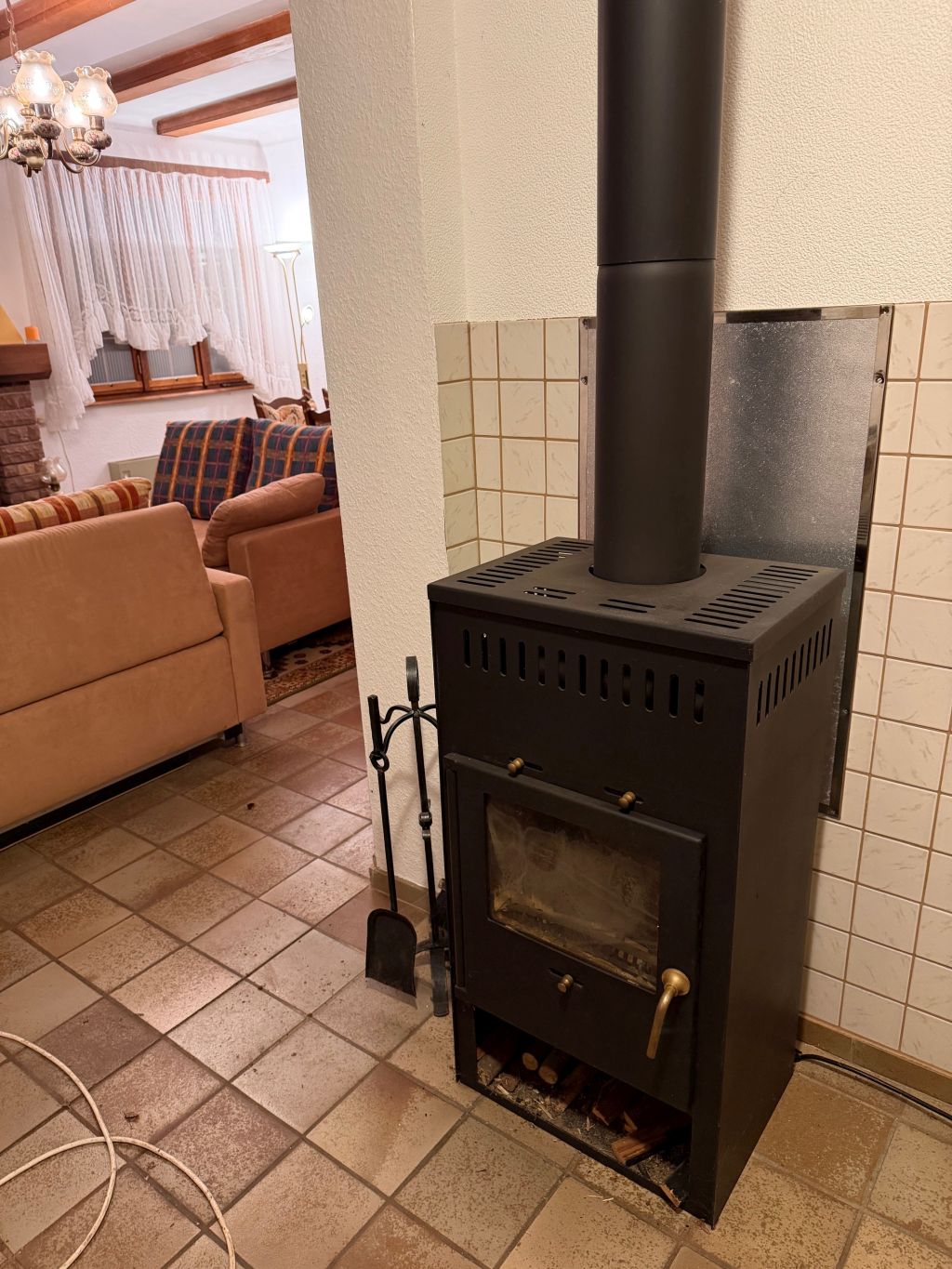 Kamin, Bodenfliesen, Einbauschrank und Deckenbalken, 2 Schlafzimmer, 1 Durchgangszimmer, z.B. als Büro nutzbar,