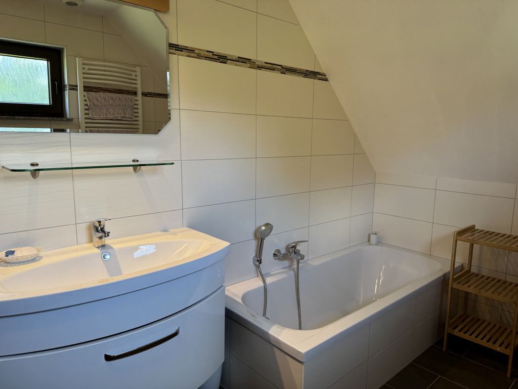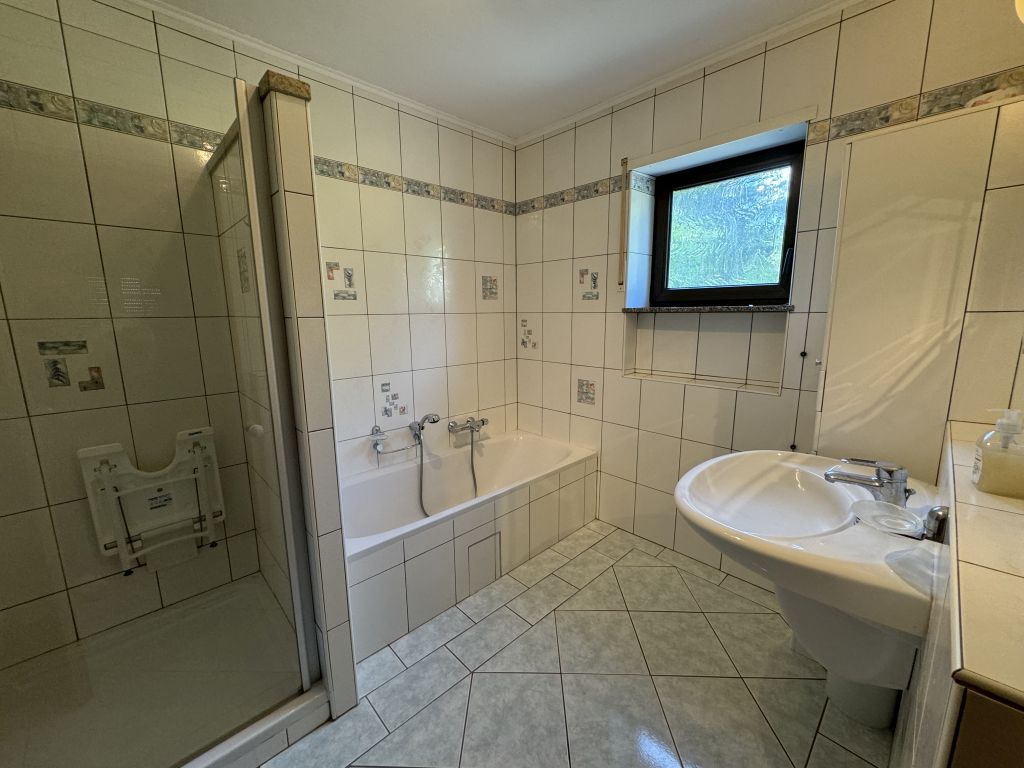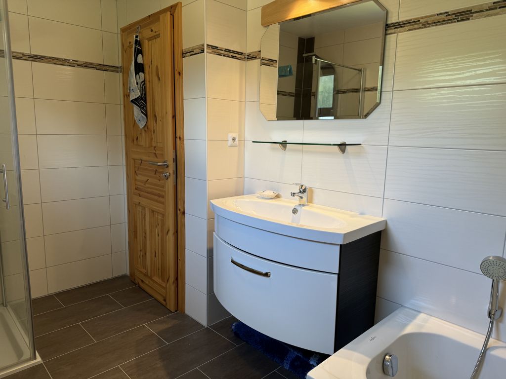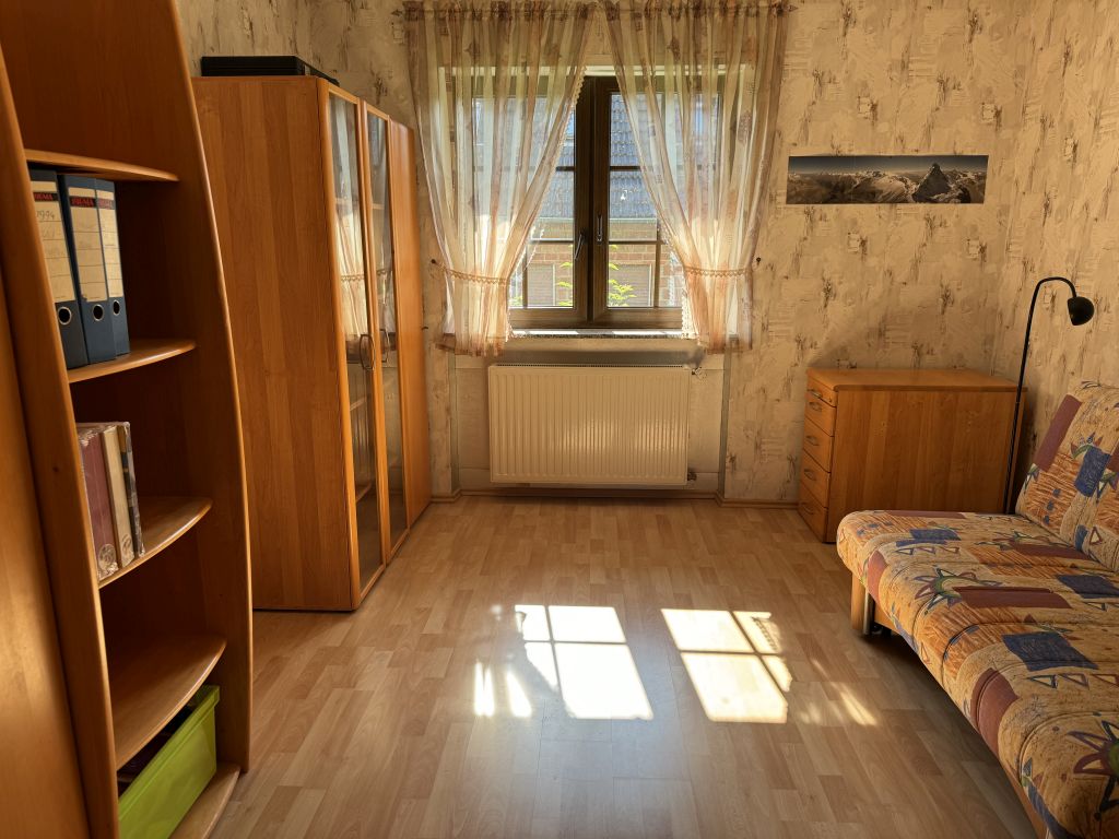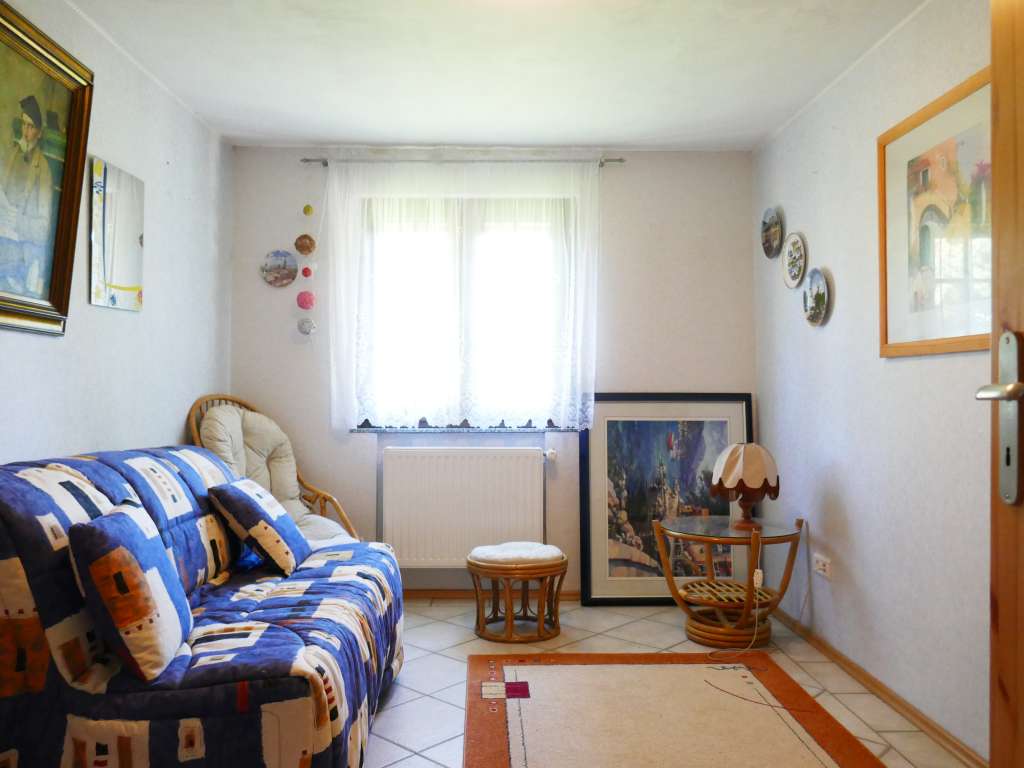 OG – (ca. 70 m²): momentan als Gästewohnung genutzt, großzügiges Wohnzimmer mit Laminatboden und Zugang zum Balkon mit herrlichem Fernblick, Einbauküche mit Essplatz, Schlafzimmer mit Laminatboden, Büro bzw. Kinderzimmer mit Laminatboden, Bad mit Wanne, Dusche und WC