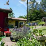 Gartengeschoss: Wohn-/Schlafzimmer mit Einbauschränken, Bodenfliesen, Deckenbalken, Holzofen, kleiner Studioküche, Dusche-WC, ältere Sauna mit Dusche, separate Werkstatt