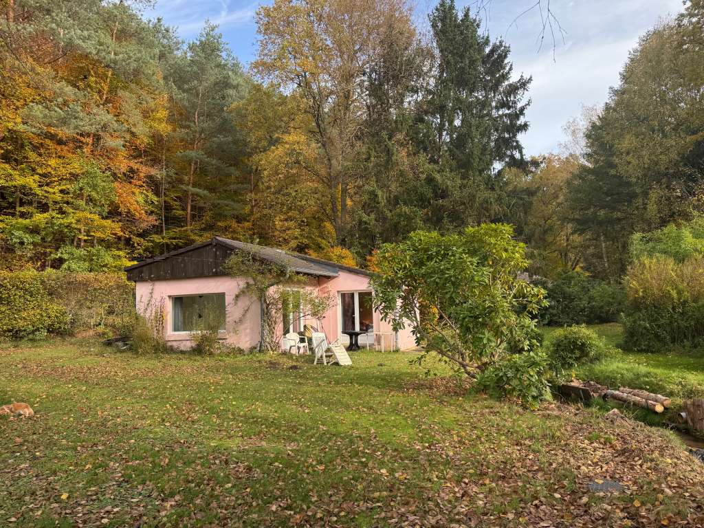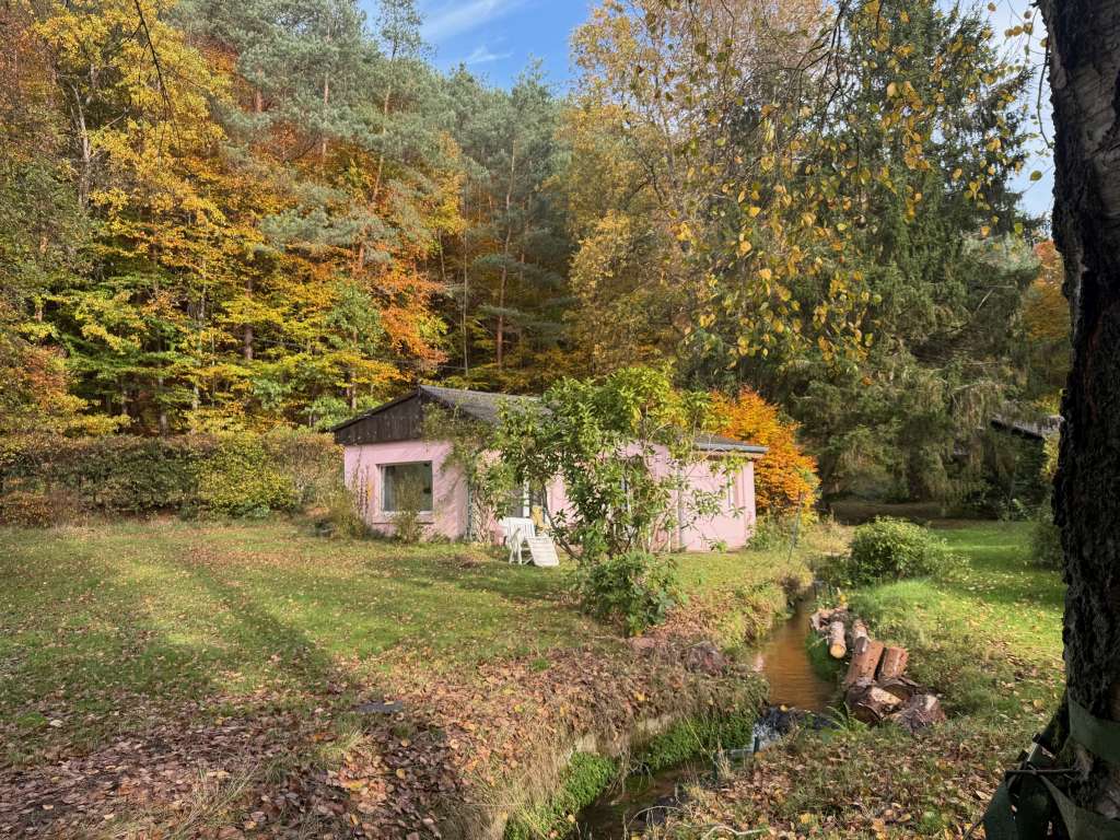 Kleines Ferienhäuschen mit schönem Naturgrundstück und Bachlauf direkt am Wald