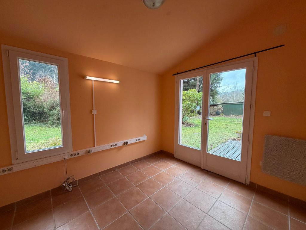 EG: 1 Zimmer mit Laminatboden und heller Holzdecke, 1 Zimmer mit Bodenfliesen, 1 Zimmer als Ausbaureserve (z.B. für Küche), Dusche-WC