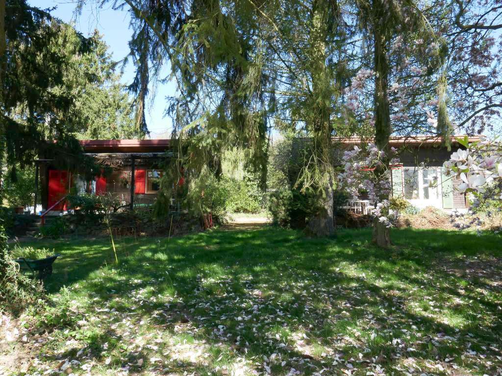erweiterbar), auf schönem Wiesengrundstück mit altem Baumbestand, ca. 1.200 m², Naturzone, nicht weiter