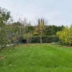 mit schönen Ziersträuchern und großer Garten-Terrasse.