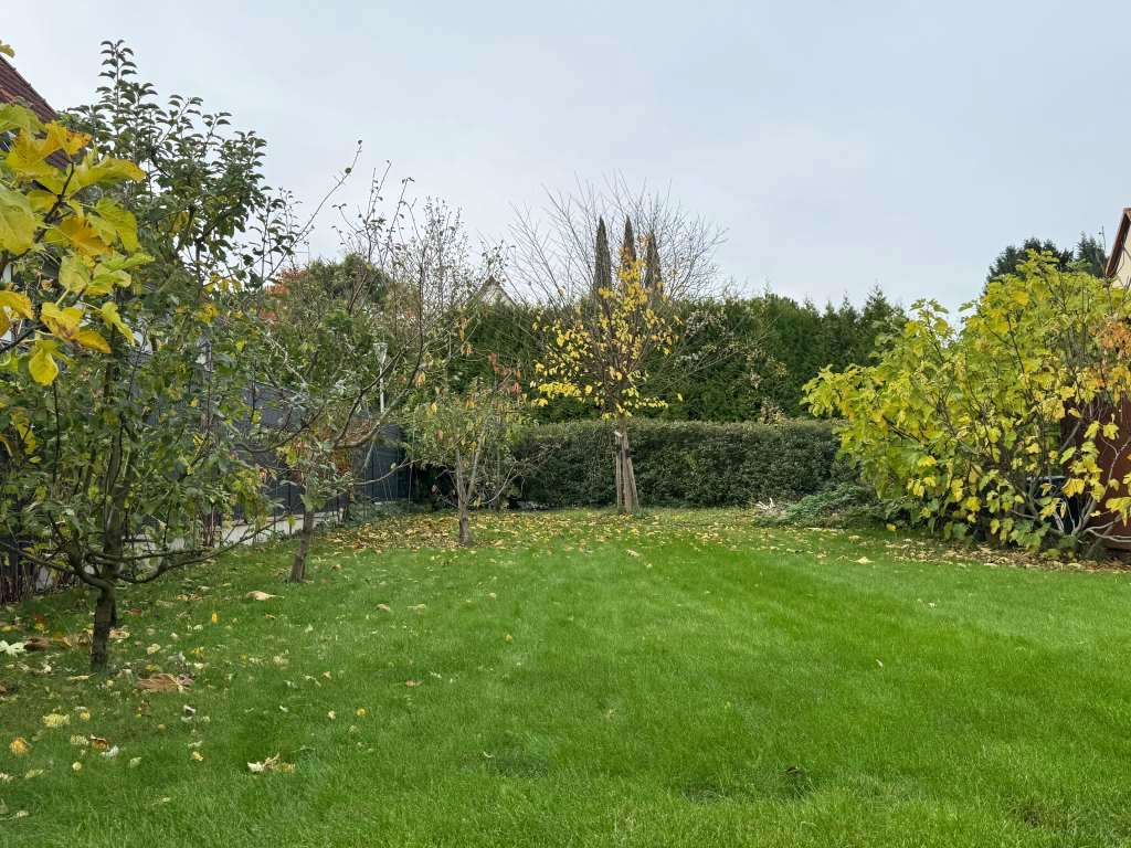 große Garage (ca. 32 m²) mit funkgesteuerter Toröffnung, ca. 850 m² Grundstück, eingezäunt, pflegleicht angelegt