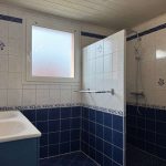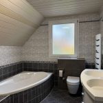 mit Wanne, Dusche, Doppelwaschbecken und WC, wenige Stufen zum OG